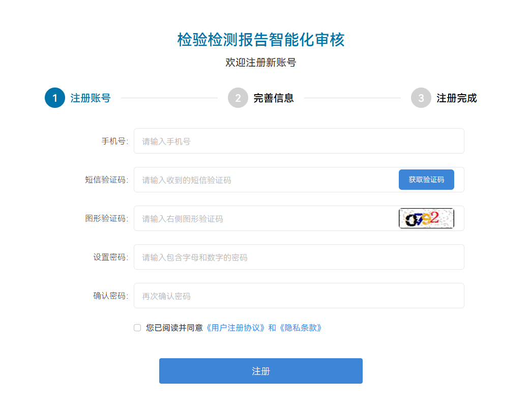 新用户可通过手机号码获取验证码。在完成相关信息填写并成功注册后,即可登录系统。每位新用户完成注册后,其账户将获赠一定额度的报告审核页数。